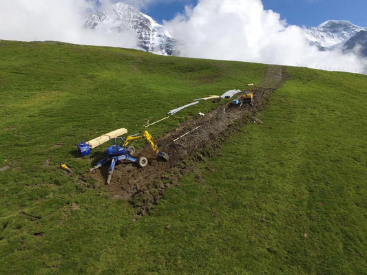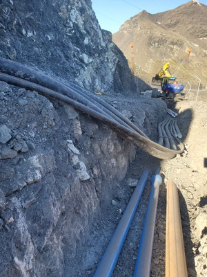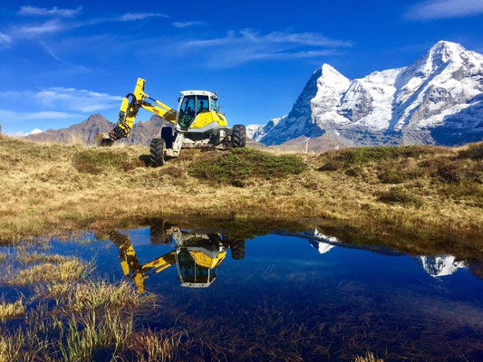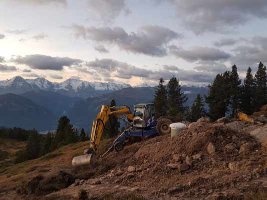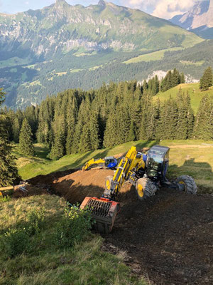 Im Gebirge gibt es viele Arbeiten im Bereich Strassen- und Weg- und Leitungsbau zu verrichten. Aber auch Pistenkorrekturen gehören mit zu unseren Aufgaben. Zudem müssen immer wieder kleinere und