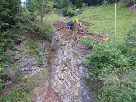 grosse Felsbrocken zu zerkleinern, ohne dabei mit dem Bagger den Bachlauf selbst zu beschädigen. Fast jeder Auftrag erfordert neue kreative Lösungen, welche wir durch unsere Erfahrung unter
