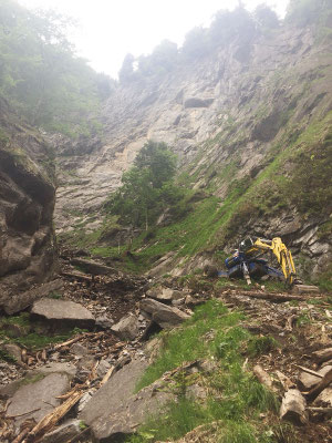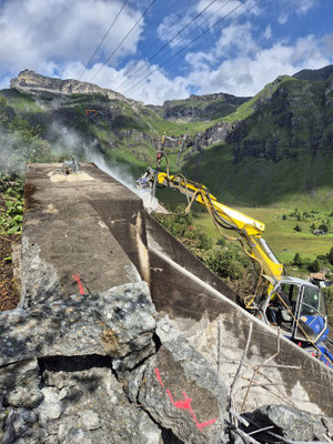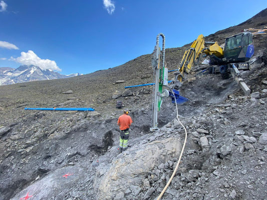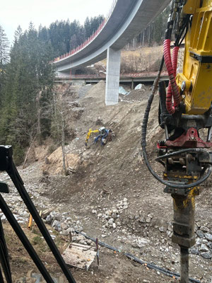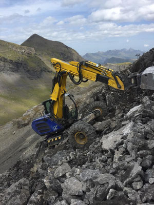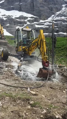 Spitzen und Hämmern in Berggebieten ist oft heikel. Deshalb ist die richtige Bedienung der Maschinen und die umsichtige Vorgehensweise besonders wichtig. Manchmal ist es auch notwendig in Bächen