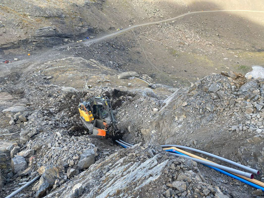 vermeiden wird vorhandenes Material auf der Baustelle direkt mit dem Bagger ausgesiebt und als Umhüllung eingebaut. Suchen Sie nach einer erfahrenen Gebirgsbau-Baggerunternehmung, sind Sie bei