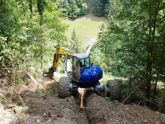 Forststrassen, Wald- und Maschinenwege. Erst dann ist eine effiziente Waldbewirtschaftung möglich. Auch die korrekte Entwässerung dieser Wege ist enorm wichtig. Durch unser Fachwissen und unsere