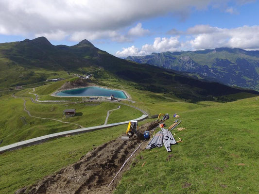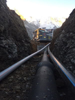 Besonders spezialisiert haben wir uns auf den Bau von Quellfassungen und Quellableitungen sowie Beschneiungsanlagen im alpinen Bereich. Um schwierige Transporte von Rohrumhüllungsmaterial zu