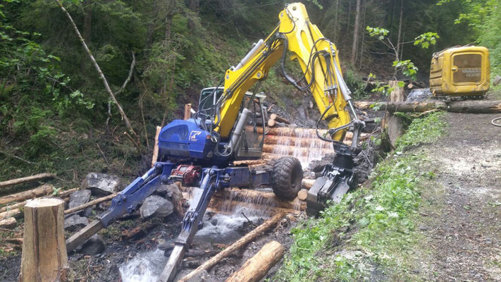 Bachverbauungen mit Steinblöcken oder Holzverbauungen erneuert werden. Mit dazu gehört auch das Leeren von Geschiebesammlern.